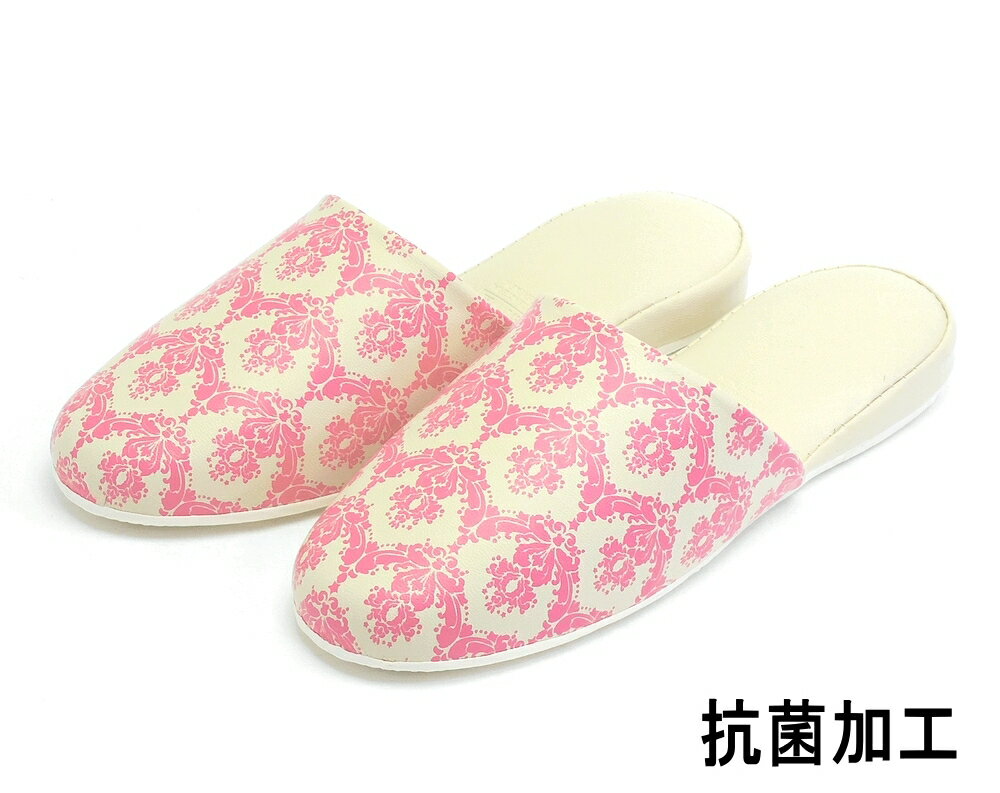 おしゃれでかわいいトイレスリッパ 抗菌加工 ビニールスリッパ ダマスク柄 ピンク
